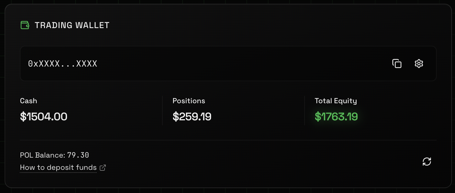 You'll see your trading wallet's address displayed in the Trading Wallet panel.